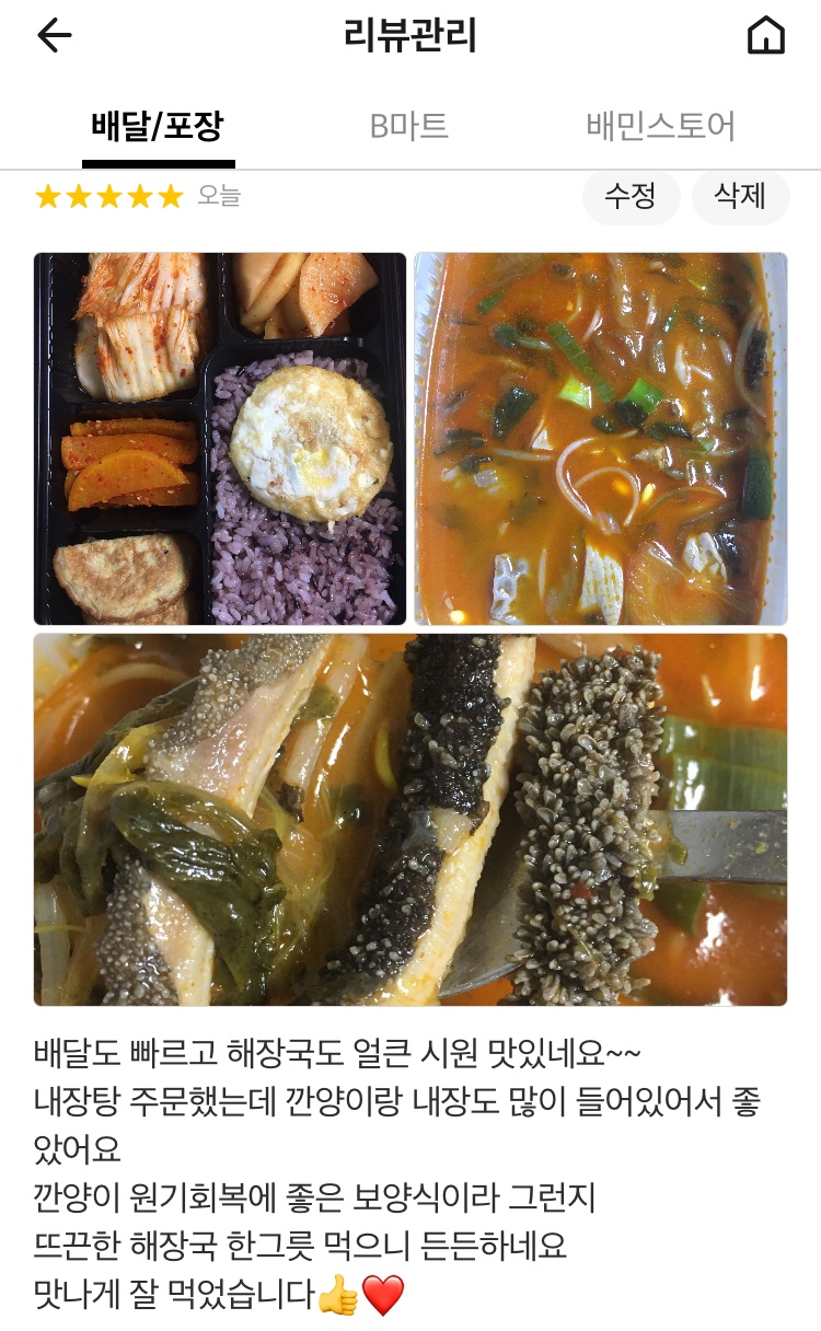 장사에 피해가 갈까봐 이쁘게 사진을 찍어서 별5개에 맛있게 잘먹었다는 리뷰를 남겼다