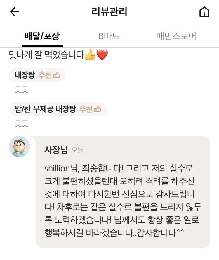 사장님이 죄송해하니 내가 더 무안해졌다