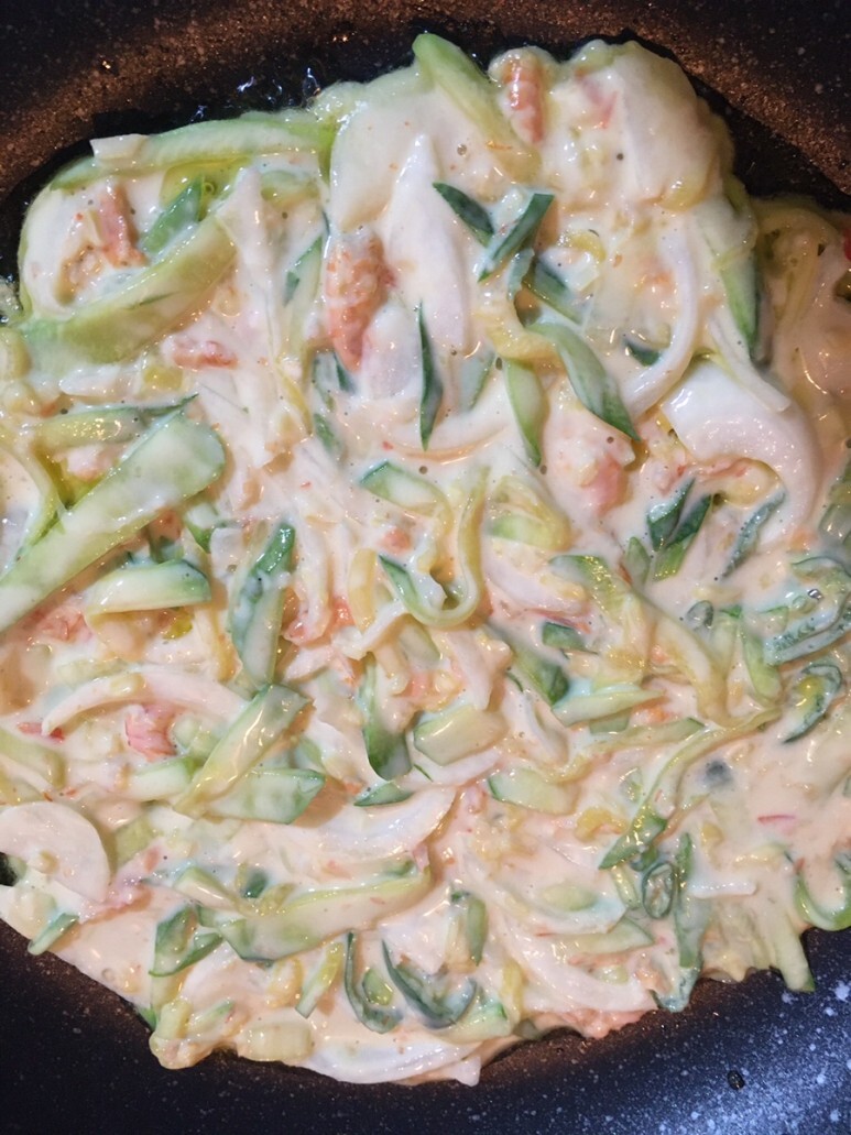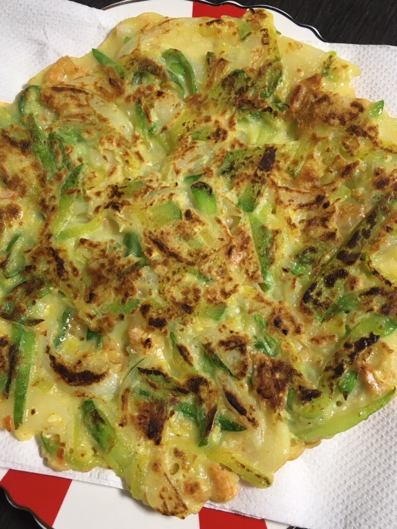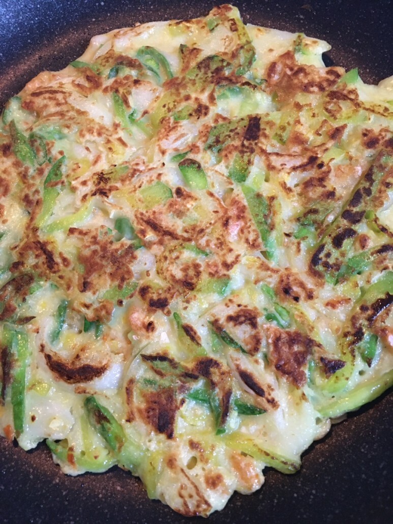 부침개에 계란을 넣고
