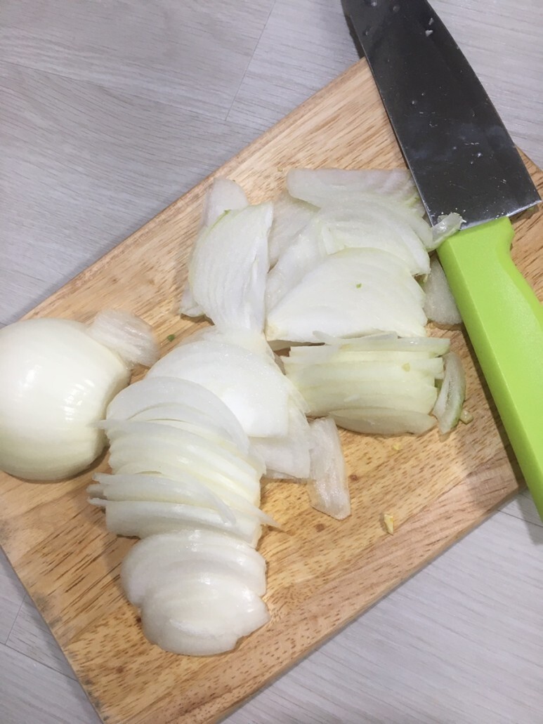 양파도 얇게 슬라이스로 썰어줍니다