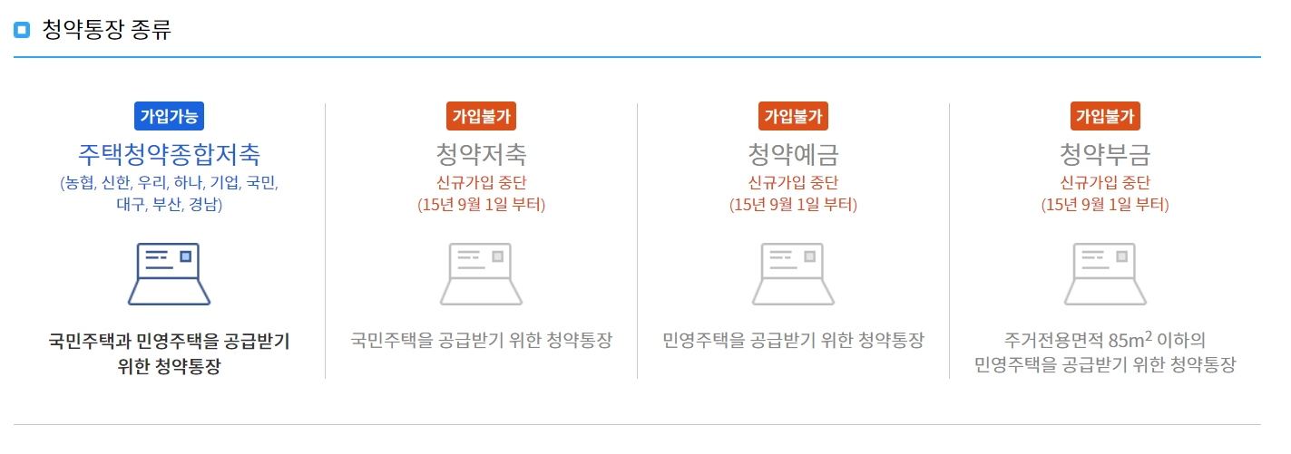 과거, 국민주택에 청약하려면 청약저축 통장에 가입해야 했고, 민영주택에 청약하려면 청약예금 통장에 가입해야 했고, 주거전용 면적이 85m2 이하의 민영주택에 청약하려면 청약부금 통장에 가입을 해야 했죠. 내 집 마련하기도 힘든데 처음부터 머리가 아파오네요~~